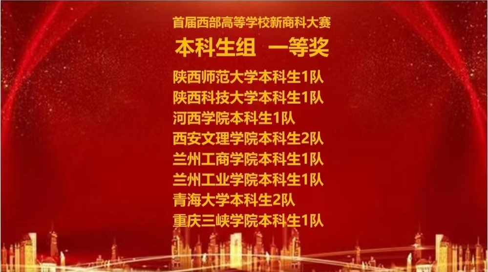 2023年4月8日,首届西部高等学校“新商科”大赛落下帷幕。本届大赛旨在落实响应国家加快数字化发展、建设数字中国的重大部署,落实新时代高等教育改革任务,加快新文科背景下的商科专业建设,推动全省商科教育内涵发展,提升人才培养数智化水平。