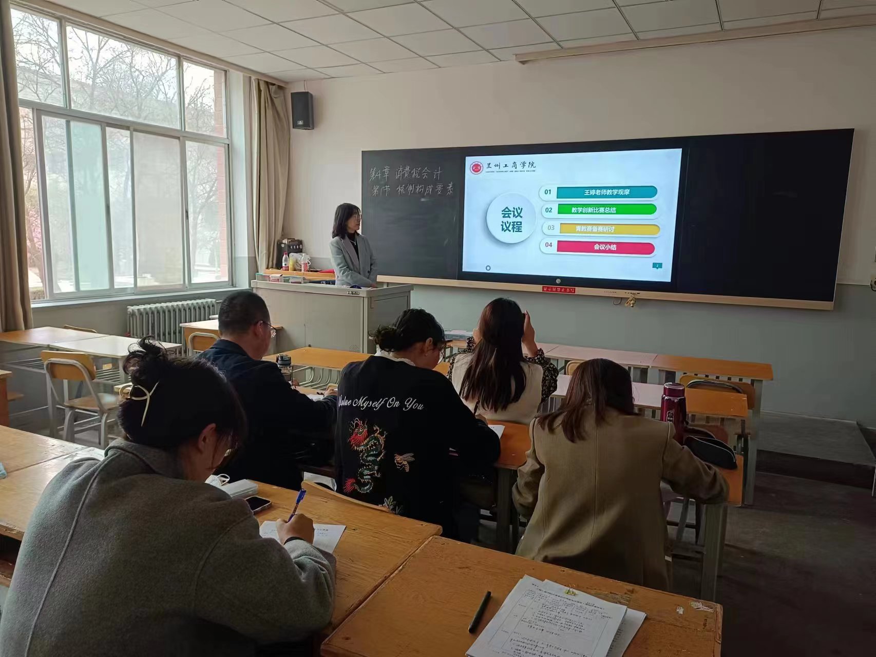 第三项为青教赛备赛研讨。会计学教研室主任石彩艳老师对今年青教赛的备赛课程与相关任课教师进行沟通交流,找出适合比赛的教学课程,初步确定备赛的人员,以及分工配合。会议最后,教研室主任石彩艳老师进行了总结发言,提出了青年教师应该认真踏实,精心打磨每一堂课,力求做到内容更丰富、层次更深入、理解更全面。在加强学科知识体系和课堂精准教学研究的基础上,融入思政教育,实现全面育人。