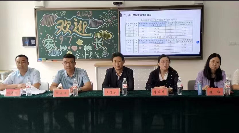 为更好帮助新生家长了解孩子未来的大学生活,强化家校联动、协同育人,构建良好的家校沟通桥梁,会计学院于2023年9月7日-9月9日分三个场次召开了新生家长见面会。学院特聘教授、审计学专业学科带头人王学龙、党委书记姚建刚、教学院长李菊香、教研室主任张红、王雪、石彩艳参加会议,见面会由学院行政院长何成洋主持。
