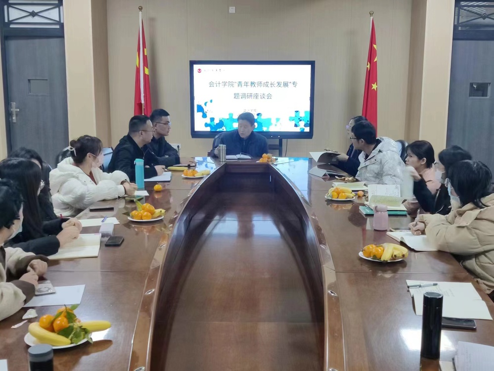 为深入学习贯彻习近平新时代中国特色社会主义思想主题教育,调研梳理学院青年教师在个人发展过程中存在的困境和诉求,帮助青年教师成长成才,切实提升青年教师思想政治素质,全面加强青年教师队伍建设。近日,我院在综合教学楼C112会议室召开了“青年教师成长发展”专题调研座谈会。学院领导班子和全体青年教师参加了座谈会,会议由会计学院院长王学龙教授主持。