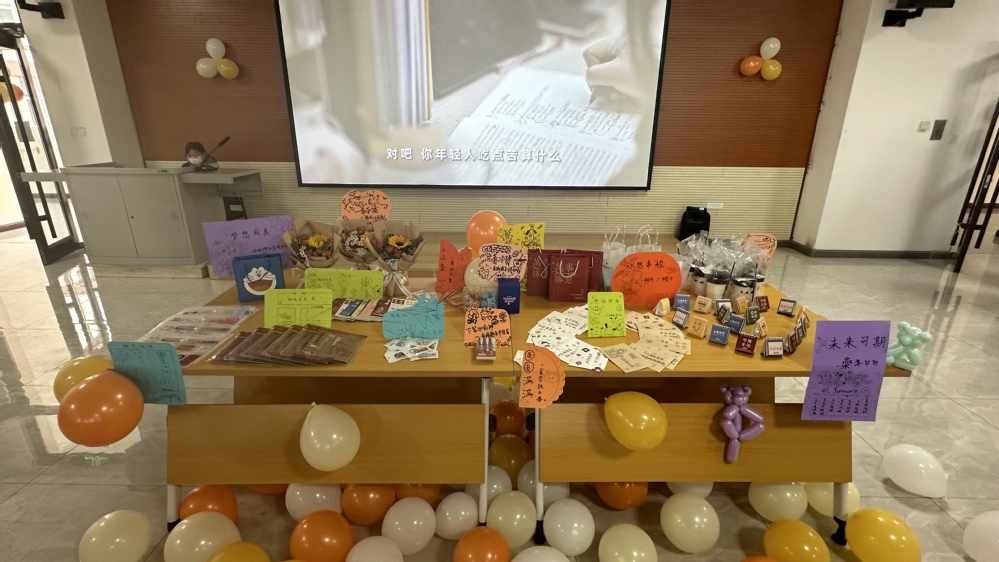 最后,考研学生们通过“乐享刮刮”环节解锁了学院为他们精心准备的专属小礼物,包括励志文具袋、精美笔记本、金榜题名笔、新年日历、考研专属书签、水果礼包等十多种充满美好祝愿的礼物。师生手写信寓意考研学子能“妙笔生花”、精美小花束希望考研学子能“一举夺‘葵’”、冬至饺子券希望考研学子能成为“佼佼者”,水果礼包寓意考研学子能“心想事‘橙’”……