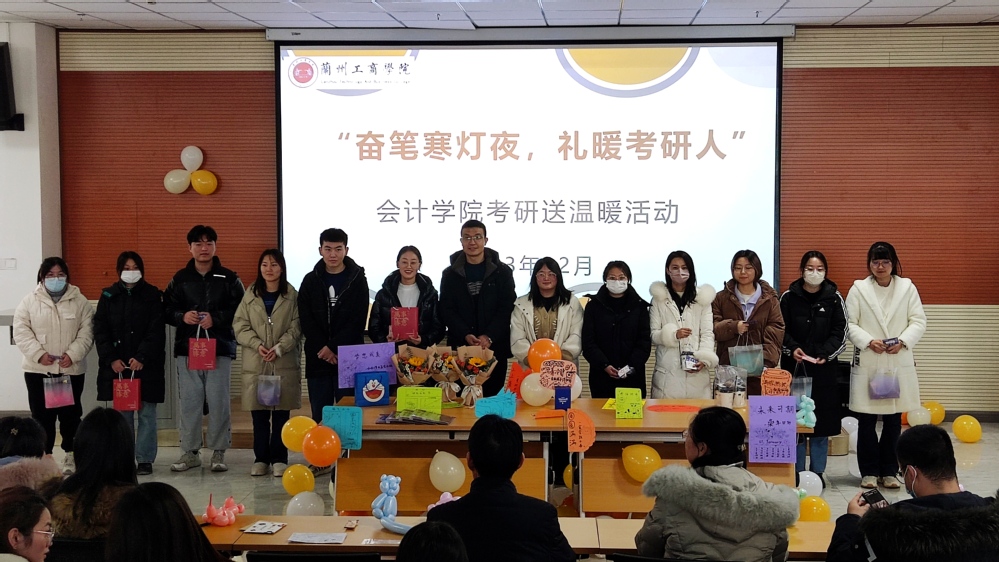为激励考研学子们以自信饱满的精神走进考场,12月20日上午,会计学院在综合教学楼C503教室举办了“奋笔寒灯夜,礼暖考研人”考研送温暖活动。会计学院院长王学龙教授、党委书记姚建刚老师、教学院长李菊香副教授、行政院长何成洋老师、行政院长助理王亚超老师、全体毕业班辅导员以及会计学院2024届120余名考研学子参加了此次活动。