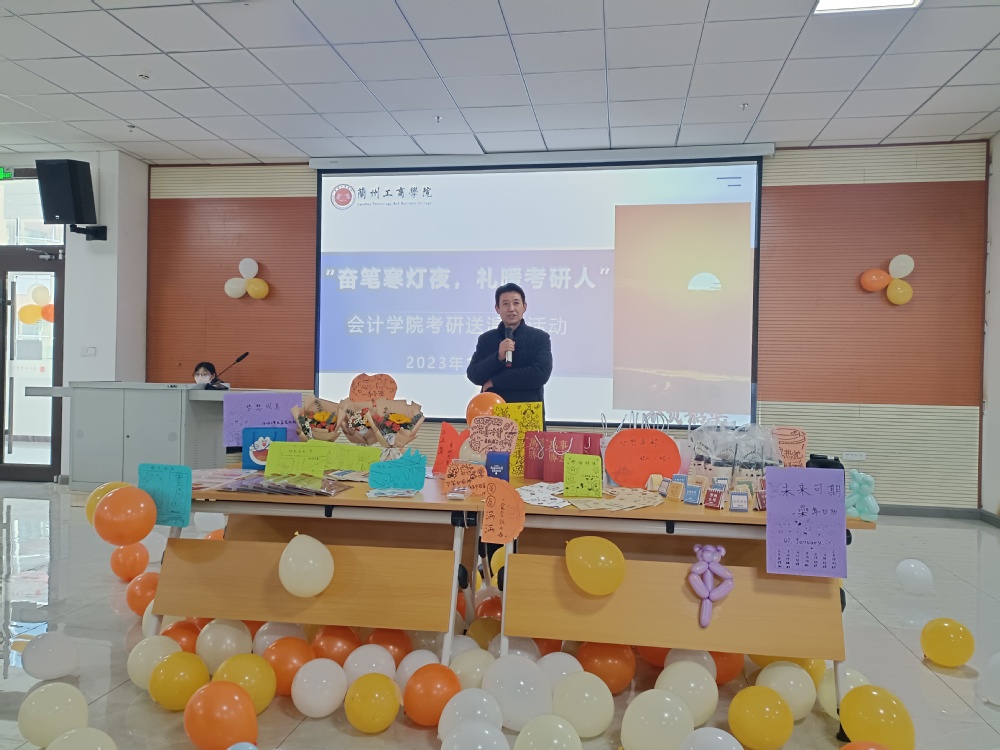 随后,院长王学龙教授代表会计学院全体师生向考研学生送上考前关怀与祝福,并引用词人王国维在《人间词话》中的人生三重境界,鼓励即将步入考场的学子们坚定考研理想信念,执着追寻青春梦想。