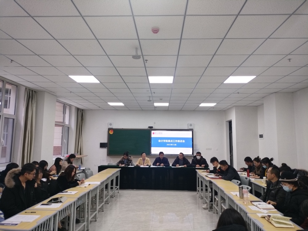 为进一步推进会计学院重点工作提质增效,12月28日,会计学院在综合教学楼B102教室召开了重点工作推进会,会议由学院党委书记姚建刚同志主持,学院全体教职工参加会议。
