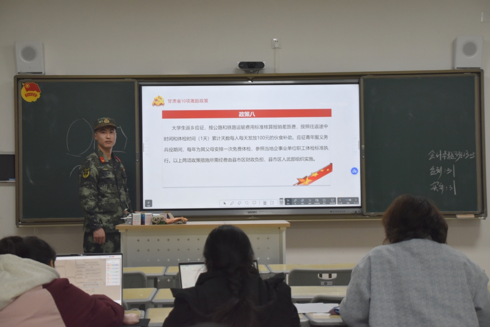 为响应党和国家的号召,进一步贯彻习近平强军思想,推进国防和军队现代化建设,号召青年学子携笔从戎、建功军营,会计学院近日组织退伍大学生开展征兵宣讲活动。