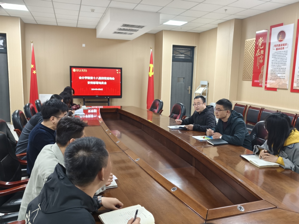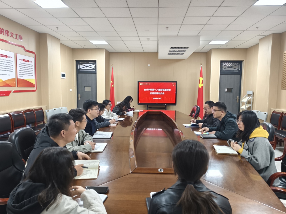 2024年4月8日,会计学院第十八届运动会动员安排部署会在综合教学楼C112会议室召开。会计学院领导班子及全体辅导员老师参加了本次会议。