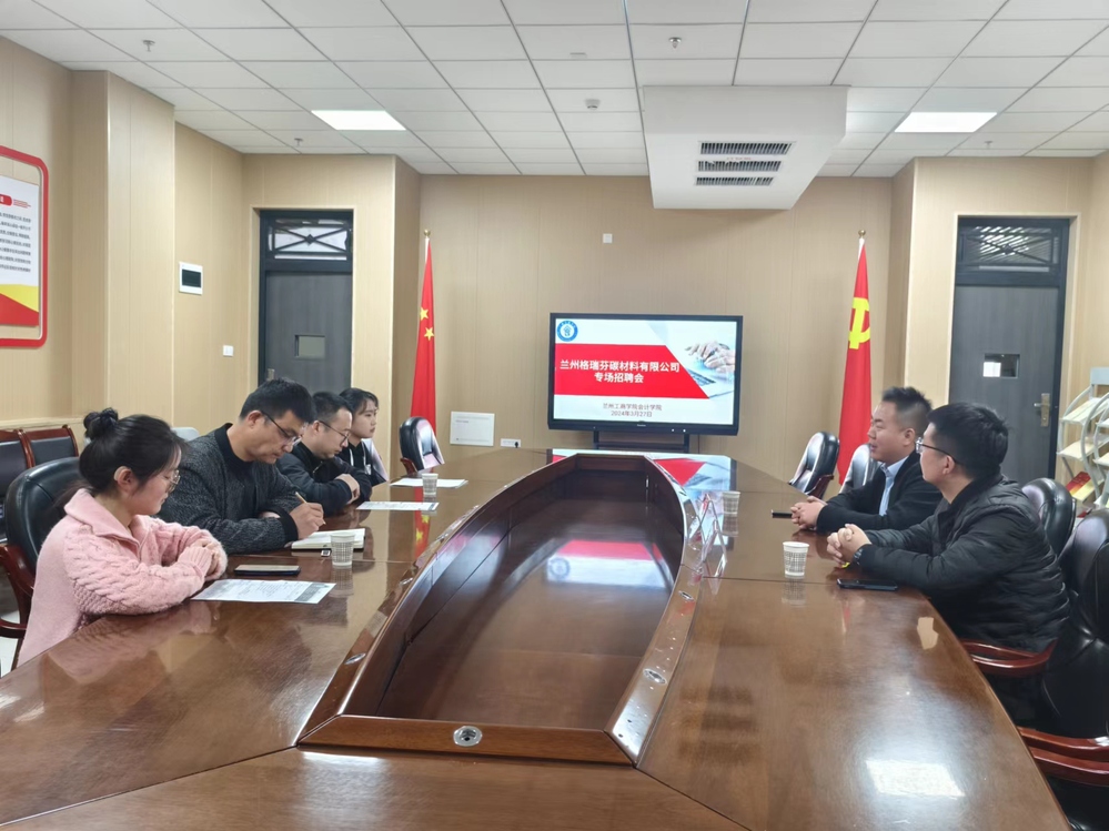 招聘宣讲会结束后,学院领导、企业负责人进行了座谈交流。兰州格瑞芬碳材料有限公司负责人表示,他们看重人才的潜力和能力,愿意为这两位毕业生提供平等的就业机会和良好的工作环境,希望以本次合作为契机,持续加强合作,践行社会责任 彰显企业担当,为更多有潜力的毕业生提供帮助和支持,共同促重点群体毕业生高质量充分就业。