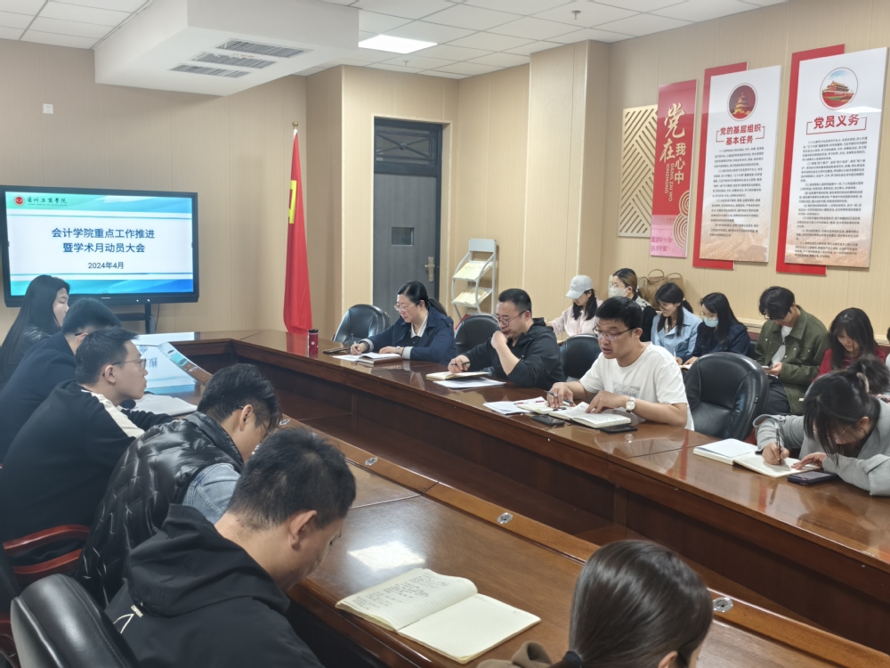 为进一步提升教学质量、加强学术研究,推动学院各项重点工作稳步前进,会计学院于4月25日组织召开了重点工作推进暨学术月动员会。学院领导班子、全体教职工参加了此次会议,会议由行政院长何成洋主持。