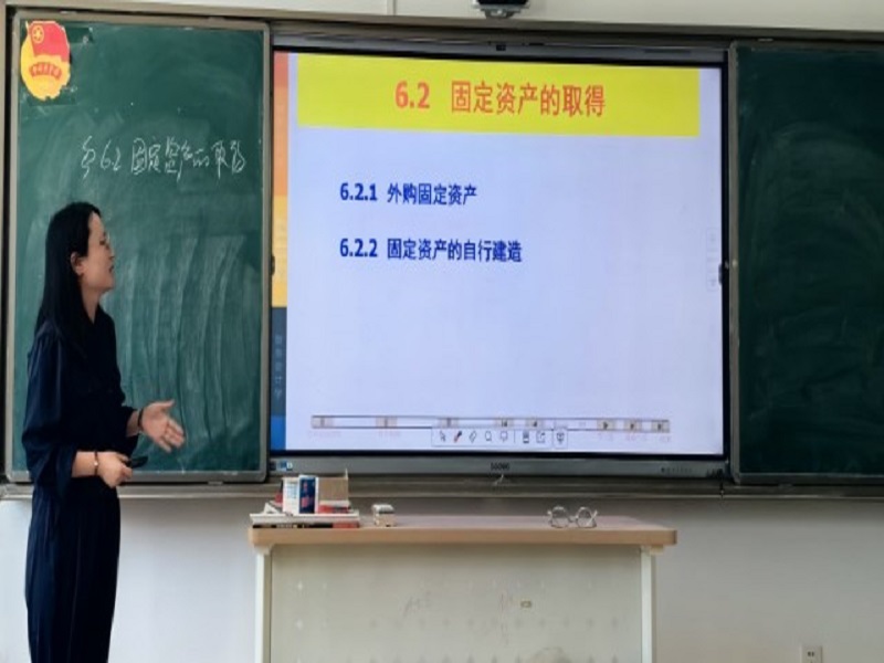 本次教学示范教师为新晋教师杨文慧老师,杨老师授课内容为《中级财务会计》第六章第二节固定资产取得核算。杨老师通过情景模拟视频引出固定资产取得业务相关要点,重点讲授了外购固定资产取得业务,分别从计量和记录两个方面开展讲授。课程中结合例题,实现讲练结合。