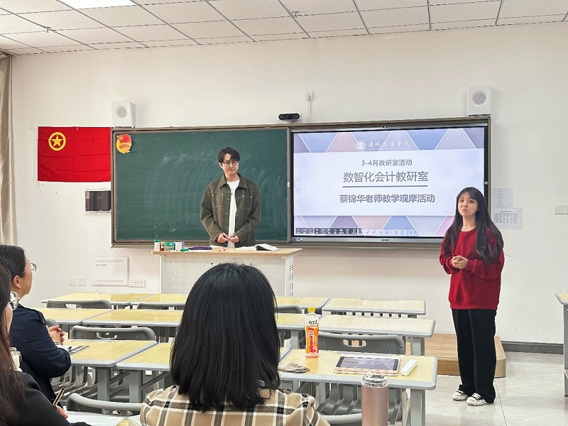 2024年4月25日下午2:30,数智化会计教研室在综合教学楼B102举行了一场教学观摩活动,旨在促进青年教师教学水平提升。本次活动由青年骨干教师段濛老师主持,数智化会计教研室全体成员参与,并邀请了会计学院教学院长李菊香观摩。