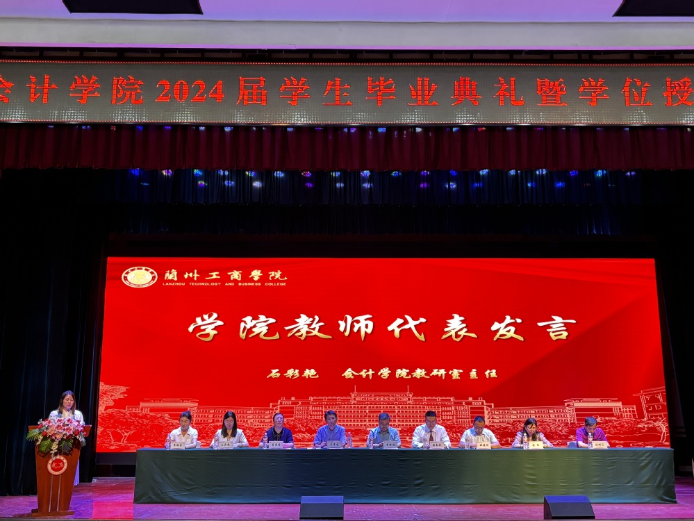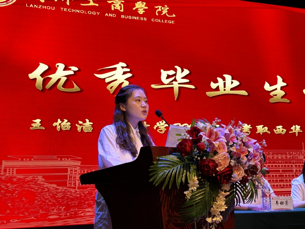 毕业生代表、成功考取西华大学会计专业硕士研究生的王怡洁同学发言,分享了在兰工商成长的点滴,表达了作为兰工商人的自豪感动和对老师们的感激之情,为全体毕业生送上美好祝愿。随后,教师代表石彩艳老师为全体毕业生送上祝福,希望在未来的道路上勇往直前,不断追求自己的梦想,无论走到哪里都能常“回家”看看。