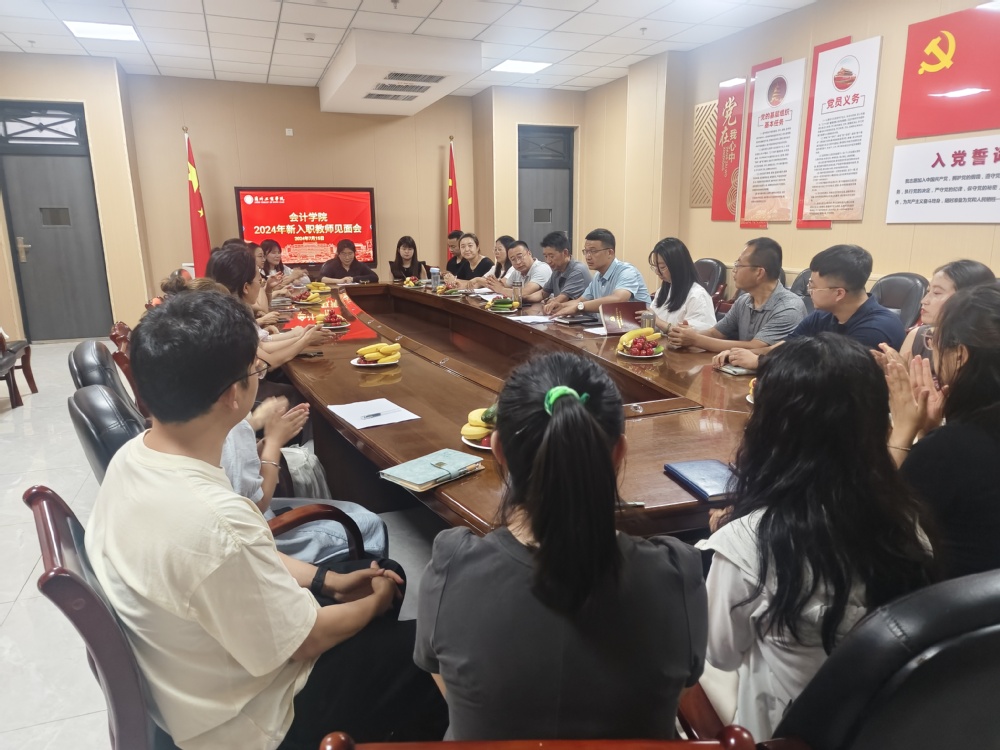 仲夏时节,奋斗其时。为了让新教师们尽快了解学校的教育教学理念、适应并融入新环境,2024年7月16日,会计学院在综合教学楼C112会议室召开了2024年新入职教师见面会。会计学院院长王学龙,行政院长何成洋,党委书记姚建刚,行政院长助理王亚超,教研室主任石彩艳、王雪、李小龙等参加了会议,会议由行政院长何成洋主持。