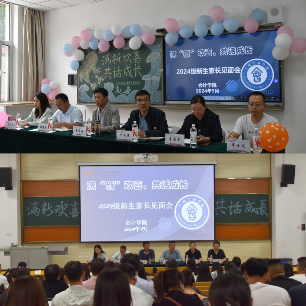 家校携手助成长,同心共育待花开。为增进新生家长对学院的了解,搭建家校联动桥梁,把握新生成长的“拔节育穗期”,共同为新生的成长保驾护航。会计学院于2024年9月6日、7日下午分别在综合教学楼B103、C603召开两场“满新欢喜,共话成长”2024级新生家长见面会。会计学院院长王学龙教授,党委书记姚建刚老师,教学院长李菊香教授,行政院长何成洋老师,教研室主任出席会议,会议由行政院长何成洋主持。