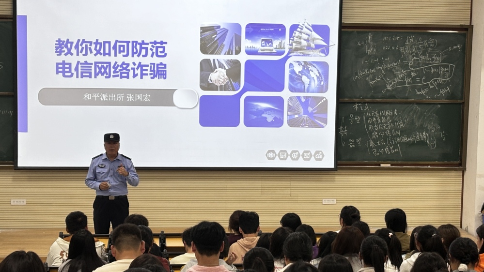 为扎实做好新生教育工作,提高2024级新生电信诈骗的防范意识,创建平安校园,我院于9月11日邀请和平派出所张警官在综合楼C503为2024级新生做了“谨防电信诈骗,加强安全意识”专题教育讲座。本次讲座共分4场次进行,覆盖了会计学院2024级近800名新生。
