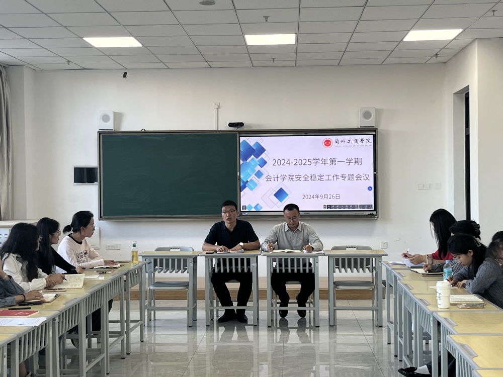 为深入贯彻落实学校安全稳定工作的重要会议精神,进一步靠实学院安全管理责任,推进我院安全稳定工作,9月26日下午,会计学院在综合教学楼C101教室召开了安全稳定工作专题会,学院党委书记姚建刚、行政院长何成洋、行政院长助理王亚超及全体教职工参加会议,会议由姚书记主持。