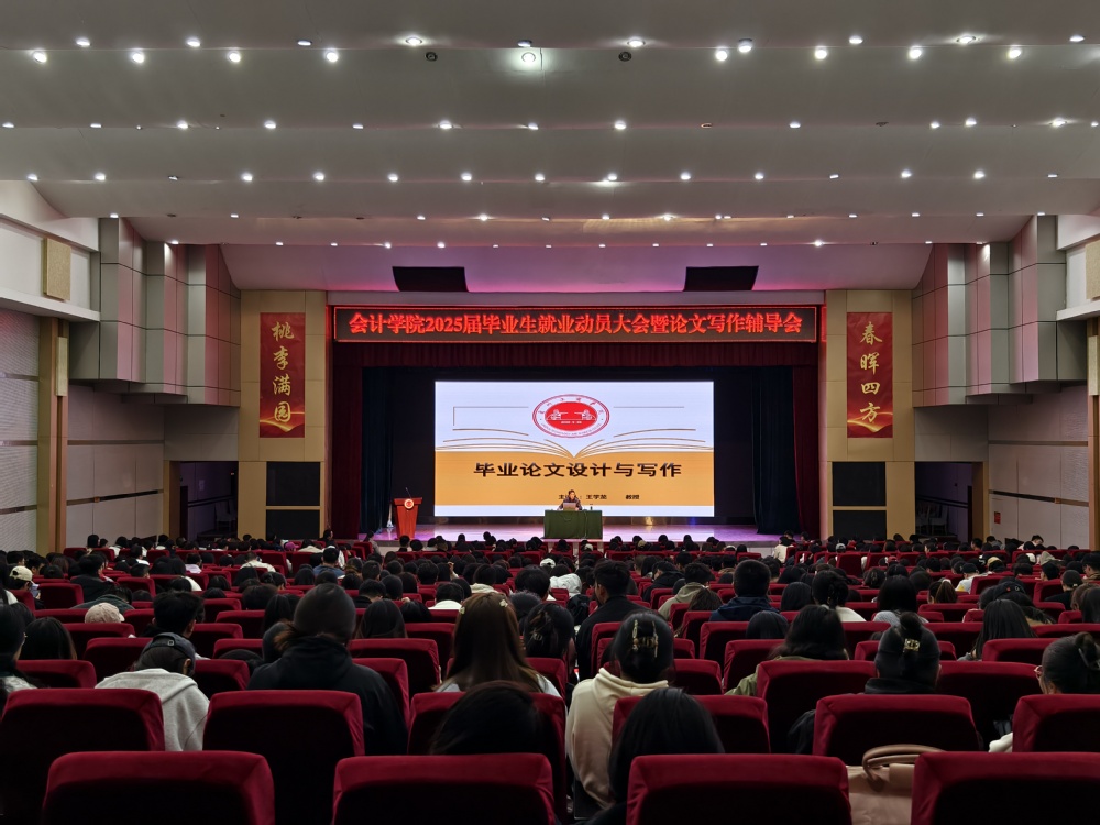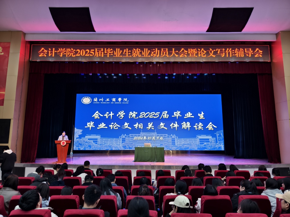 为提升2025届毕业生论文写作能力,引导学生了解毕业论文写作规定,提高论文质量,会计学院于10月9日下午在学术报告厅举办本科毕业论文写作辅导会。辅导会由院长王学龙教授、教学院长李菊香教授主讲,全体2025届毕业生参加本次会议。