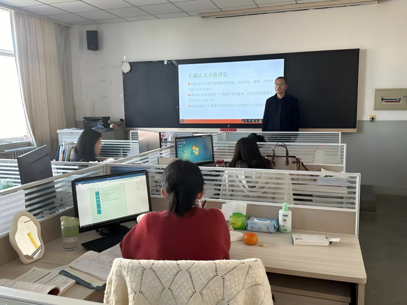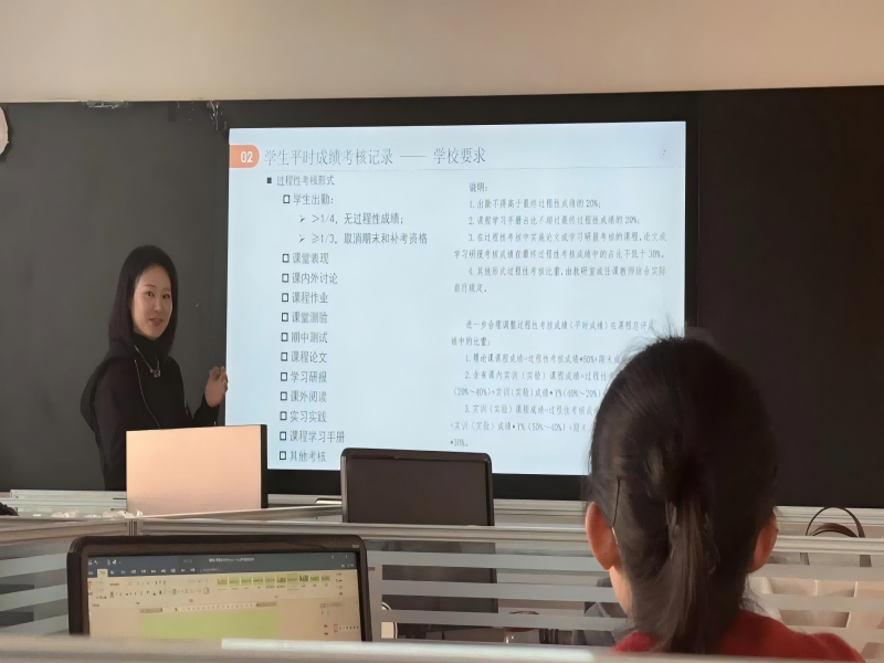 首先,李小龙老师从“正确认识合格评估”、“积极开展实践导向的课堂教学改革”、“深耕细作,挖掘科研创新点”、“将合格评估精神融入每一堂课的教学实践”四个维度对合格评估进行解读。他强调,教研室全体成员应从思想上深刻认识到合格评估的重要性,积极践行我校“三热爱”教育精神,在教学和科研活动中严格遵守学校的相关规定,将合格评估视为提升教学质量与科研水平的契机,力争通过合格评估营造一个更加规范、有序、高效的教学科研环境。然后,李小龙老师针对教案、讲义及日志撰写的规范化要求以及注意事项等做了深入的讲解。教研室成员李昕霖老师结合自身的经验为全体成员分享了过程性考核的具体操作办法、平时成绩的考核标准及规范化记录等。