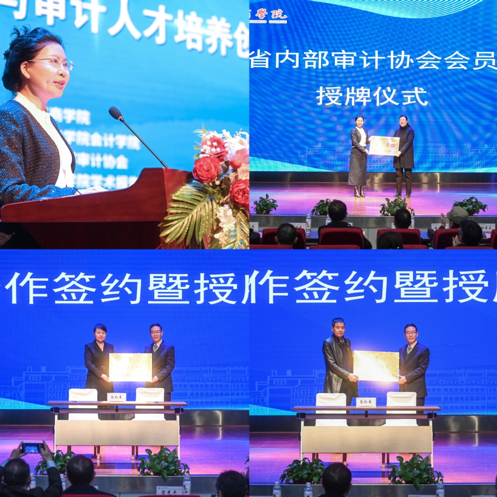 会议期间,举行了甘肃省内部审计协会会员单位授牌仪式,甘肃省内部审计协会为兰州工商学院会计学院授牌。同时,兰州庄园牧场股份有限公司、兰州睿晴会计事务有限公司与兰州工商学院进行了校企合作签约及授牌。