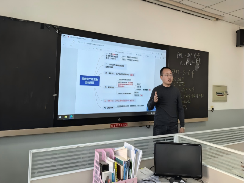 在教研室活动中,张霞和梁潇丹两位新进教师分别就《财务管理》、《会计学》两门课程的教学设计过程进行了介绍,随后开展了教学观摩,其余教师针对讲授内容进行点评,既肯定了新进教师的授课优点,同时也指出了她们在教学设计、PPT制作以及课堂组织等方面存在的不足,并提出了宝贵的建议。接着,教研室主任李小龙老师以“固定资产购置业务的核算”为例,分享了教学设计理念,分别从信息化工具的使用、教学重难点的把握、有效组织课堂讨论、课程思政点的融入、课后反思等方面详细阐述了教学设计的环节、思路以及注意事项。其他老师也分享了自己的设计思路,现场气氛热烈融洽。老教师鼓励新进教师不断研究教学方法,以OBE教学理念为主导,优化教学设计,激发学生学习兴趣。