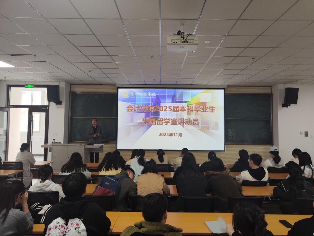 为加强2025届毕业生对出国留学政策的了解,拓宽升学渠道,引导学生尽早做好规划和申请准备,11月22日,会计学院在综合教学楼C603教室召开了出国留学政策宣讲会。此次宣讲动会由会计学院行政院长何成洋主持,毕业班辅导员及部分2025届毕业生参会。