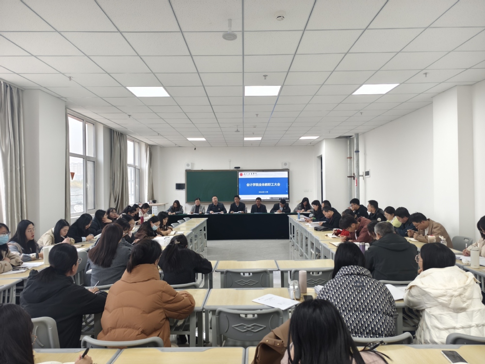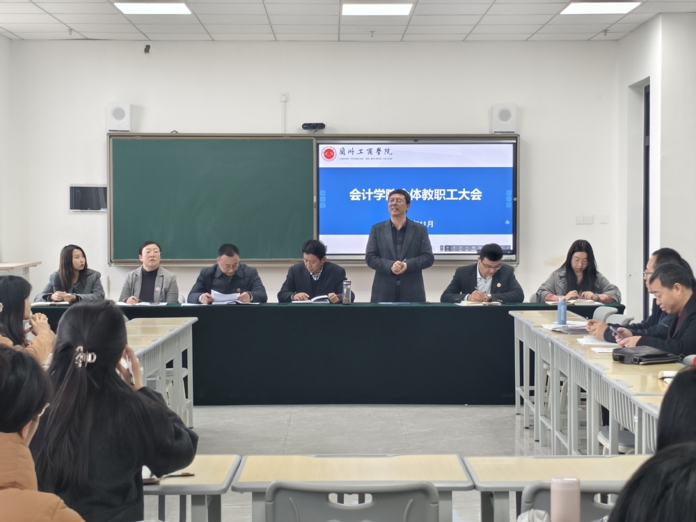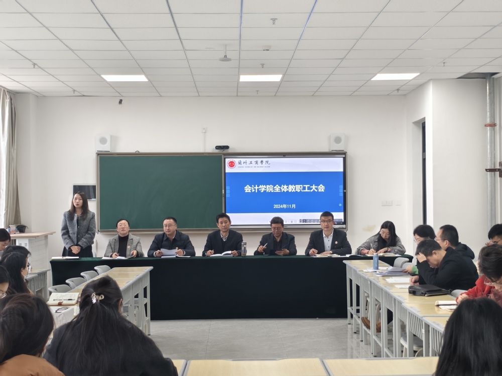 为全面总结前半学期的各项工作,明确下一阶段学院的工作重点,确保合格评估等各项重点工作的有序、高效推进,11月21日,会计学院在综合楼C101召开了以“凝聚共识 汇聚力量”为主题的全体教职工大会。会议由行政院长何成洋主持。