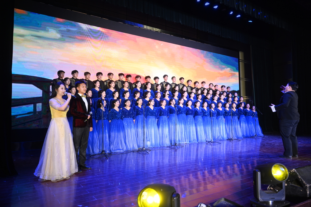 会计学院合唱团深情演绎了《壮美延安》与《中国人民志愿军战歌》两首歌曲。《壮美延安》的旋律将听众带回了革命圣地,歌声中饱含对延安精神的敬仰与追思,展现出先辈们在艰苦环境中坚守信念、自力更生的伟大延安精神。《中国人民志愿军战歌》激昂的节奏,如冲锋的号角,唱出了志愿军战士们英勇无畏、保家卫国的钢铁意志。