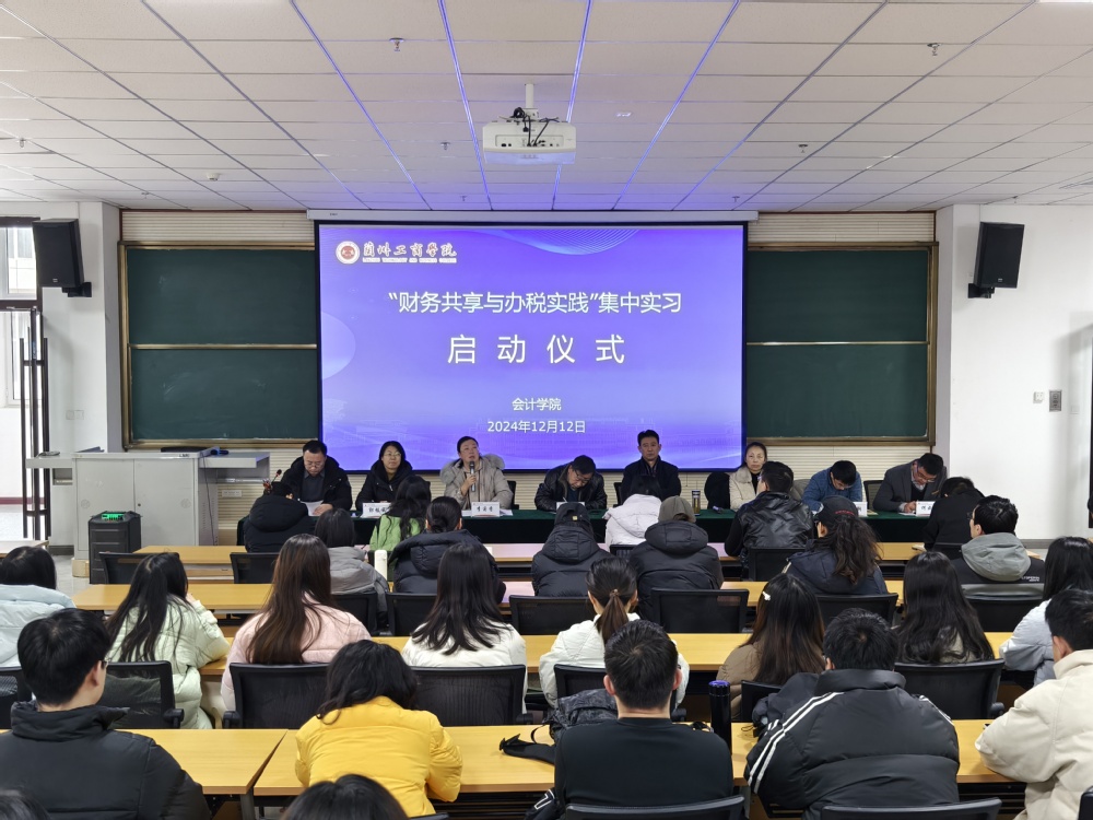 为进一步强化学生专业实践能力,探索产学研合作模式,为毕业生搭建更加高效、便捷的实习平台,会计学院携手厦门网中网软件有限公司面向会计学院2025届本科毕业生开展“财务共享与办税实践”集中实习。本次集中实习启动仪式于12月12日上午在综合教学楼C503举行,会计学院党委书记姚建刚主持,教务处处长李宝麟教授、实践教学管理科科长石小钢老师、厦门网中网软件有限公司高级讲师郭桂云、刘莉莎老师、会计学院领导班子、实习助教、毕业班辅导员老师及70余名参加此次实习的毕业班同学出席了启动仪式。