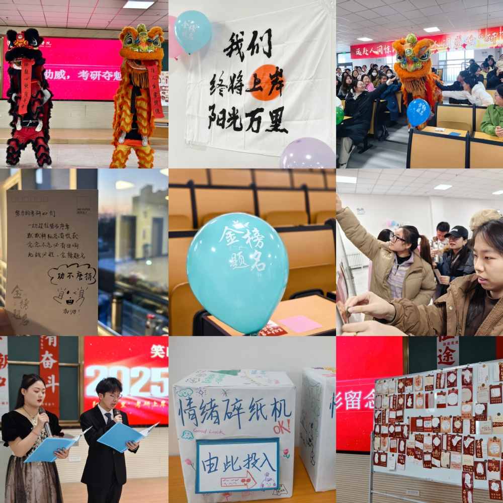 最后,学院为各位考研学子精心准备了“醒狮助威,考研夺魁”舞狮节目,“情绪碎纸机”、“好事‘花’生”、“留下心愿,实现梦想”、“一举‘糕’中”等互动游戏,希望考研学生能在考研初试中万事胜意,一战成硕。
