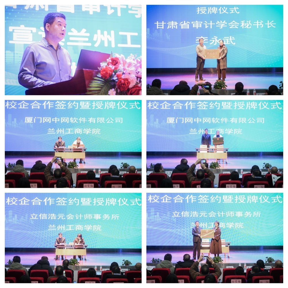 此次研讨会形式多样、内容丰富,设主会场、三个分会场及圆桌会议。上午主会场由兰州工商学院会计学院院长王学龙教授主持。开幕式上,兰州工商学院教学常务副校长宿光平教授代表学校致辞,甘肃省审计学会会长李玉彪先生代表学会致辞,秘书长李永武先生为兰州工商学院会计学院授予甘肃省审计学会单位会员。同时,兰州工商学院与厦门网中网有限公司、甘肃立信浩元会计师事务有限公司进行了校企合作签约及授牌仪式。
