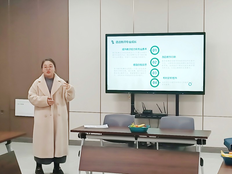 会上,张老师分享了她在以往教师教学创新大赛中的参赛经历。首先,张老师从参赛感受谈起,表示参加大赛不仅是一个展示自己教学成果的平台,更是一次深刻的教学反思过程。她指出老师们通过参赛,一方面能够提升教师教学能力激励教学创新,促进教师专业成长;另一方面,能够提高学生学习兴趣,强化知识点掌握,促进学生能力发展。接着,张老师详细讲解了她的备赛过程,她强调参赛老师应该详细了解竞赛规则,明确竞赛要求、掌握评分标准。最后,张老师指出教学创新大赛不仅是对教师教学能力的考核,更是一次对教学方式、教学理念和教学工具的综合评估,参赛团队成员间需要不断磨合,团结协作,在比赛中充分体现团队凝聚力。