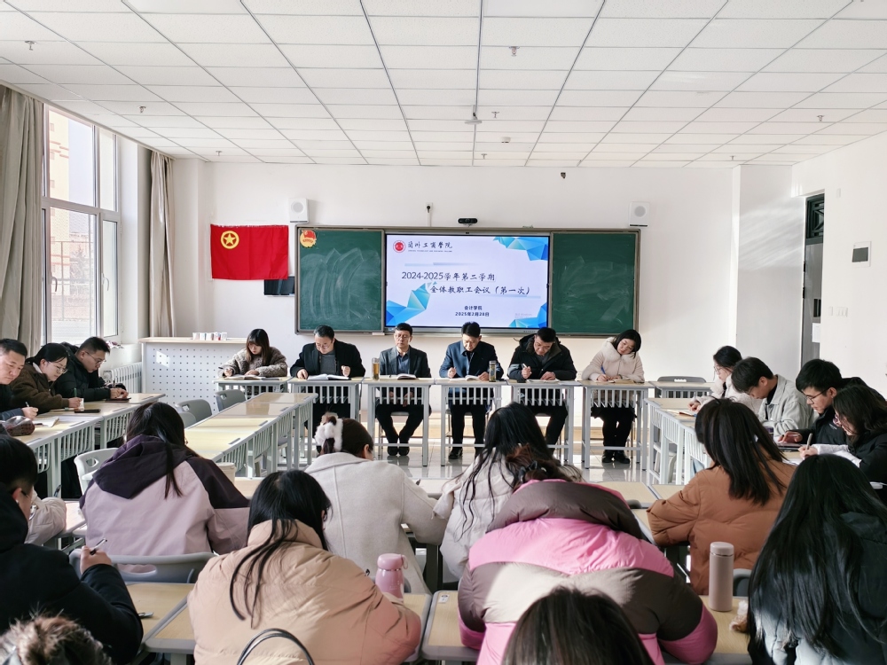 一年春作首,万事行为先。为更好统筹和安排新学期的各项准备工作,精心谋划开局新篇,形成推动学院高质量发展的强大合力,会计学院于2月28日上午在综合教学楼A105召开了2024 - 2025学年第二学期全体教职工会议。学院领导班子和全体教职工参加了会议,会议由行政院长何成洋主持。