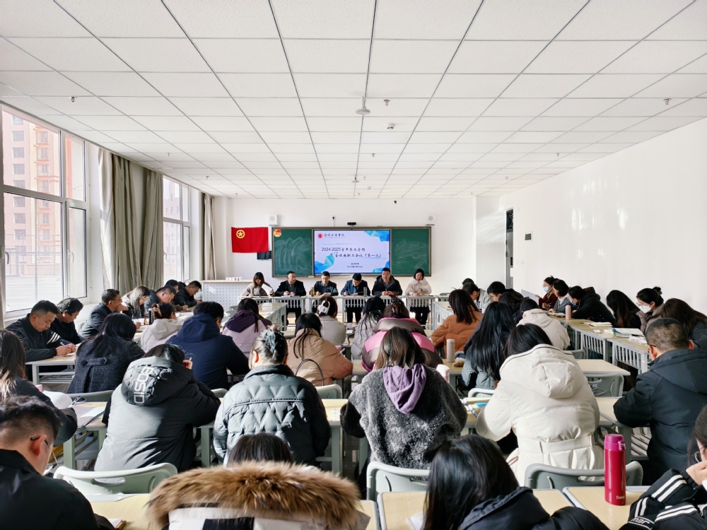 最后,院长王学龙讲话,他对学院上学期的各项工作表示肯定,对寒假期间学院重点工作推进完成情况进行通报并对全体教师提出了四点要求:一是务必做好新学期教学管理、学生管理各项准备工作;二是扎实做好迎评促建的各项工作,补齐短板;三是狠抓学风建设、推进“教室革命”;四是加强学习,主动学习AI技术并将其应用到教育教学和学生管理中,进一步提升工作质效。