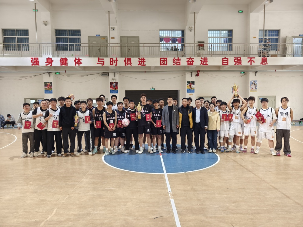 会计学院党委书记姚建刚、行政院长何成洋,体育健康指导师袁育明、葛志溪、梁海军、周苗苗,行政院长助理王亚超出席颁奖仪式。在颁奖环节,学院领导及体育健康指导师依次为获奖班级颁发荣誉证书、奖杯及奖品,充分展现了公平竞技与团队协作精神。姚建刚书记在致辞中指出,体育是教育体系不可或缺的重要组成部分,不仅有助于强身健体,更能有效培养同学们的意志品质、团队精神与竞争意识。本次篮球赛不仅增进了同学间的友谊,还显著增强了班级凝聚力与集体荣誉感。他鼓励同学们将赛场上的拼搏精神融入今后的学习和生活,以更饱满的热情、更坚定的信念迎接未来挑战。