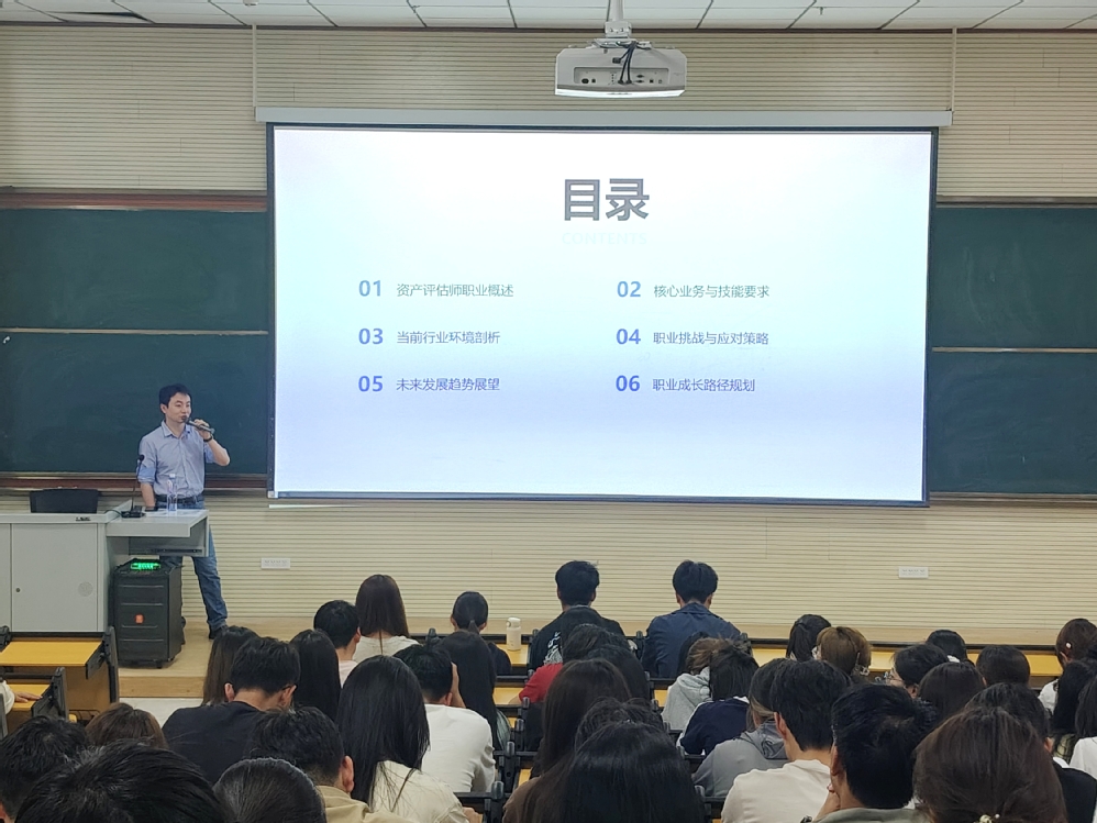 讲座中,权威老师以深厚的专业知识,系统梳理了资产评估行业的发展历程,深入剖析当下政策环境与市场需求,生动展现了资产评估师在企业并购、资产处置等业务中的关键作用。他结合自身主导的审计、评估项目实例,详细讲解工作流程与实操要点,让学生深刻理解该职业的价值所在。面对行业未来,权威老师聚焦数字化转型、绿色经济等趋势,分析其对资产评估行业带来的机遇与挑战,并鼓励学生扎实学习财务、法律知识,积极提升数据分析等核心技能,以更好地适应行业变革。