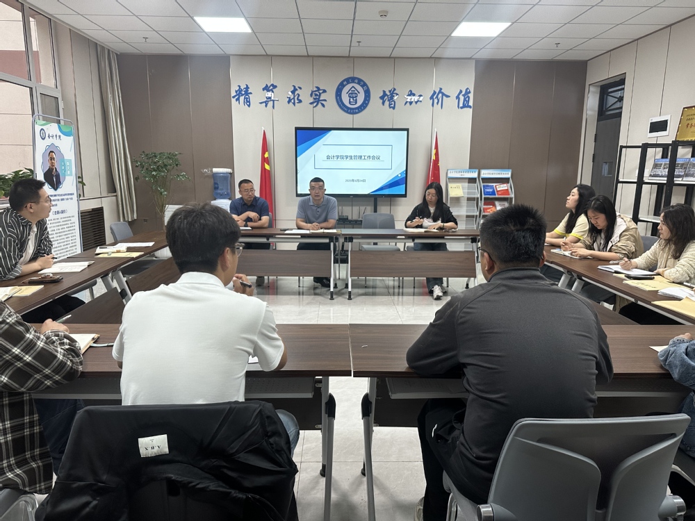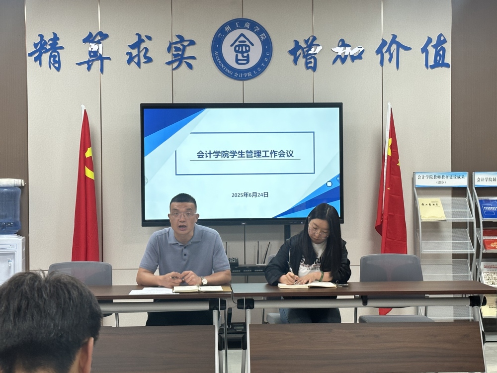 2025年6月24日,会计学院在综合楼A108召开期末学生管理工作会议,全面部署关键时期学生教育管理任务。学院领导班子和全体辅导员参加,会议由行政院长何成洋主持。