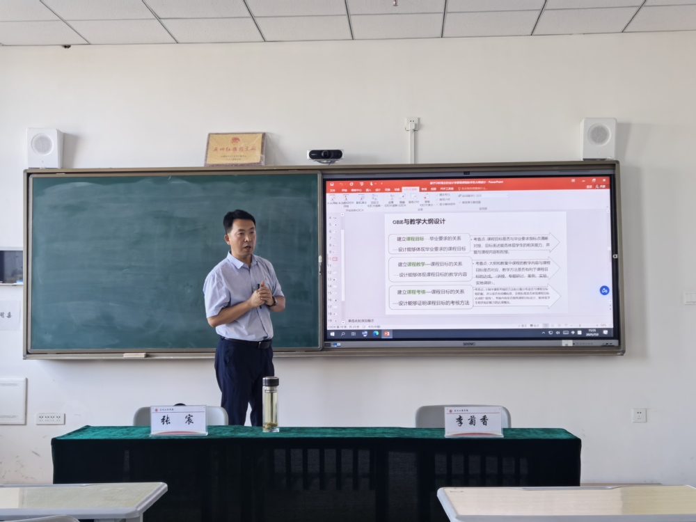 活动伊始,张宸老师结合教学实践,详细讲解了OBE(成果导向教育)理念在专业教学中的应用。他强调,教师应关注学生的学习成果、实际操作能力和解决问题的能力,尤其在基础课程中,要与职业需求紧密结合。张教授还指出课程体系的改革和课程内容应适应时代和社会需求,培养学生的综合能力,而不仅是知识传授。在讲解教学大纲时,张教授则强调教学目标的设定,认为大纲应明确各模块的目标、内容、学习方法和评估标准,以确保教学顺利进行并达到预期成果。