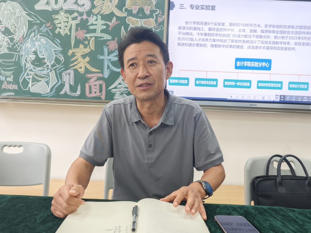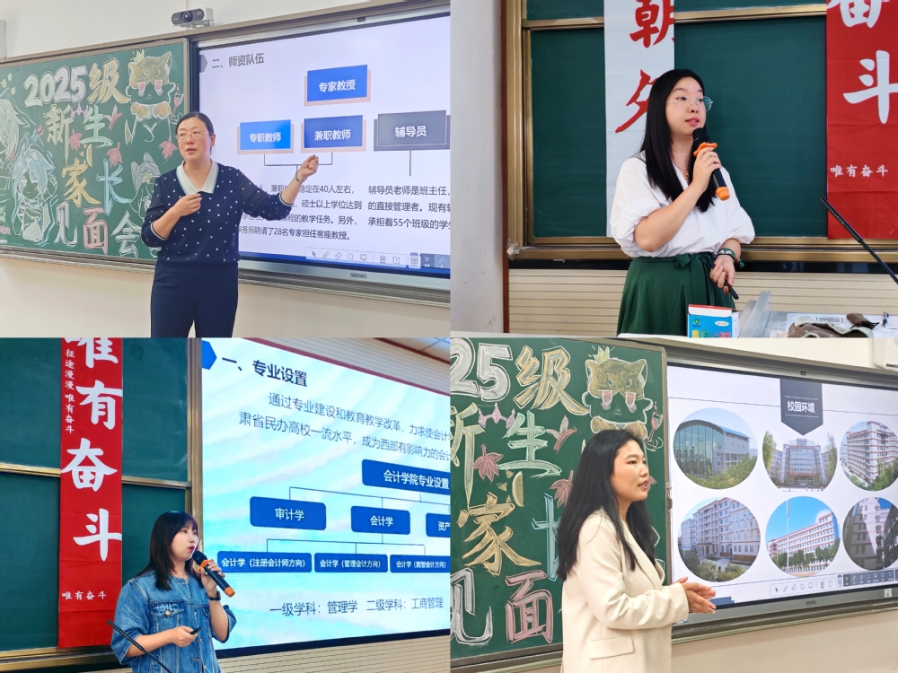 为进一步加强家校沟通、凝聚育人合力,助力2025级新生顺利开启大学生活,会计学院于9月2日和3日下午分别在综合教学楼B101、C502教室成功举办两场主题为“会计迎初见,家校共温情”的新生家长见面会。会计学院院长王学龙教授,教学院长李菊香教授,教学副院长李菲老师,行政副院长王亚超老师,教研室主任、学生代表参加会议,本次家长见面会由行政院长助理韦甜芳老师主持。