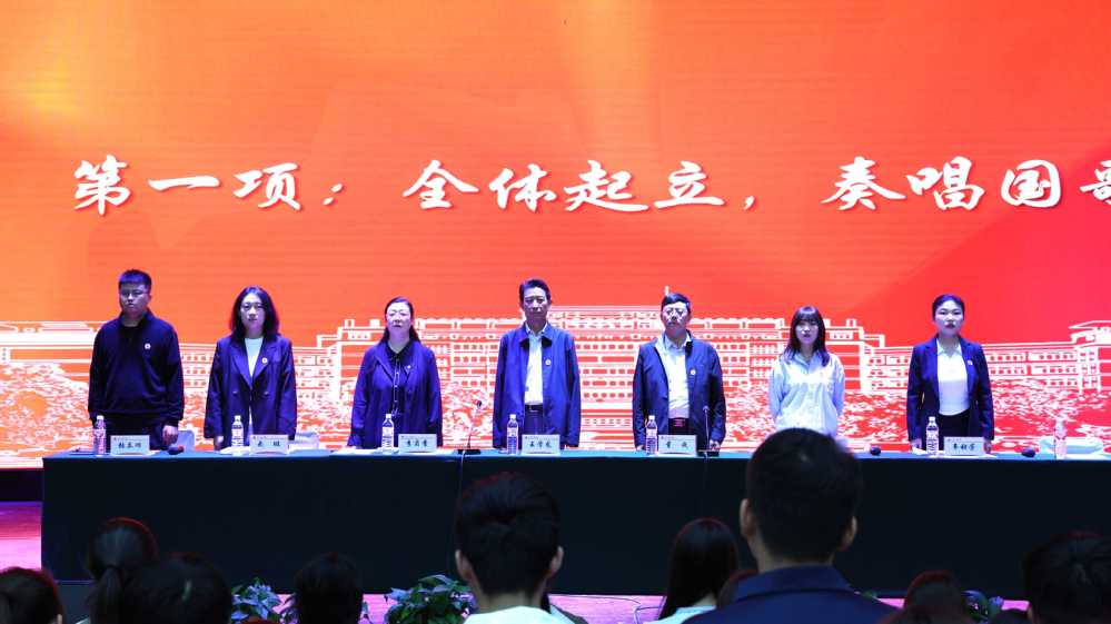 大会在庄严的国歌声中拉开序幕。