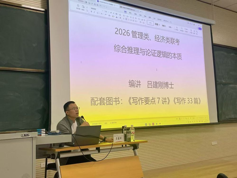 讲座中,吕建刚博士立足多年考研辅导积淀,以“识别命题特征、活用母题模板”为主线,结合典型例题,系统梳理高频考点,深入剖析解题思路,将抽象复杂的逻辑知识转化为清晰实用的应试方法,帮助学生实现从“知考点”到“会解题”的能力跃升。吕博士还就冲刺阶段的复习节奏、真题运用与错题管理等方面提出具体建议,助力学生科学规划、高效冲刺。