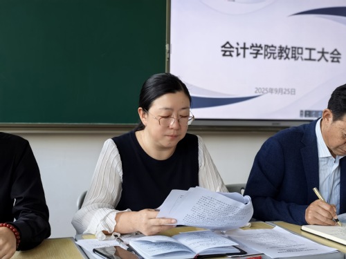 2025年9月25日下午,会计学院在综合教学楼C101召开第四次全体教职工大会。学院领导班子成员及全体教职工参会,会议由行政院长兼党委书记何成洋主持。会议围绕新学期工作部署、教学科研推进、安全稳定落实、评估迎检准备等多项重点任务展开,统一思想、明确分工、压实责任,为新学期各项工作有序推进奠定坚实基础。