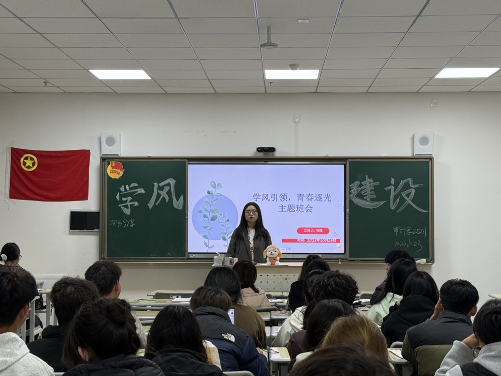 为深入贯彻落实立德树人根本任务,全面推进“三全育人”工作格局,营造奋发向上、求真务实的优良学风,2025年10月13日至11月13日,会计学院在全院各年级集中组织开展了“学风引领,青春逐光”学风建设主题班会系列活动。本次班会以统一思想、凝聚共识、明确目标为导向,致力于为学生成长成才注入思想动力、奠定坚实根基,推动形成以学促行、以行践学的良性循环。