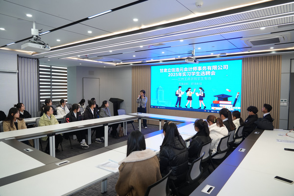 为深化校企协同育人,拓宽学生实习渠道,助力会计学院毕业生精准对接行业优质资源,11月22日下午会计学院联合甘肃立信浩元会计师事务有限公司开展2026届毕业生集体实习项目活动。会计学院教学院长李菊香、辅导员老师韩希、丁怡带领26名学生赴甘肃立信浩元参加集体实习面试选拔。