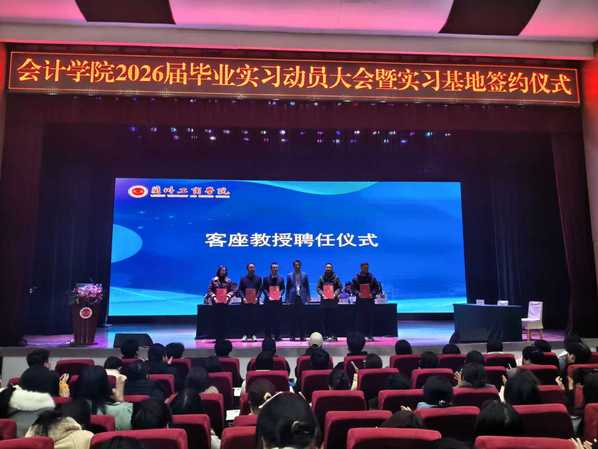 为规范实习管理、深化校企协同育人,11月21日下午,会计学院在学术报告厅召开2026届毕业实习动员大会暨实习基地签约仪式。学院领导班子、毕业班辅导员、2026届全体毕业生参会,甘肃九道致臻会计师事务所等六家企事业单位嘉宾受邀出席。
