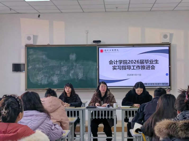 为扎实推进毕业生实习工作,确保实践教学质量,强化过程管理,2026年1月11日上午,会计学院组织召开了2026届毕业生实习指导工作推进会,会议由教学院长助理武璇主持,教学院长李菊香和教学副院长李菲出席,全体实习指导教师及相关管理人员参会。