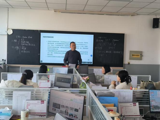 此次磨课教师分别为李小龙、蔡雪婧、王春艳。在磨课展示环节,三位教师分别进行了教学演示,李小龙老师打磨课程为《财务大数据分析与决策A》,重点讲授了Python语法基础中的“列表”数据类型,蔡雪婧老师展示了《会计综合实验》中的“销售管理及筹资业务”,王春艳老师打磨课程为《成本会计》,重点讲解了“费用在各类产品以及期间费用之间的归集与分配”。展示结束后,教研室成员不仅针对每位教师的教学内容提出具体建议,还围绕课堂教学设计的共性优化方向展开了多维度深入研讨,包括课件制作质量、教师教态仪态、教学环节设计、信息化教学手段运用等。特别针对教学难点问题,教师们集思广益,重点探讨了如何将Python编程与财务应用场景有效衔接、如何增强实验实训课程的互动性与实操性、如何通过案例教学帮助学生突破费用分配的理解难点等,最后大家一致认为,数智化背景下的会计课程教学应更加注重理论与实践的结合、技术与业务的融合。活动现场气氛热烈,教师们通过相互研讨、交流心得,实现了教学理念的碰撞与融合。