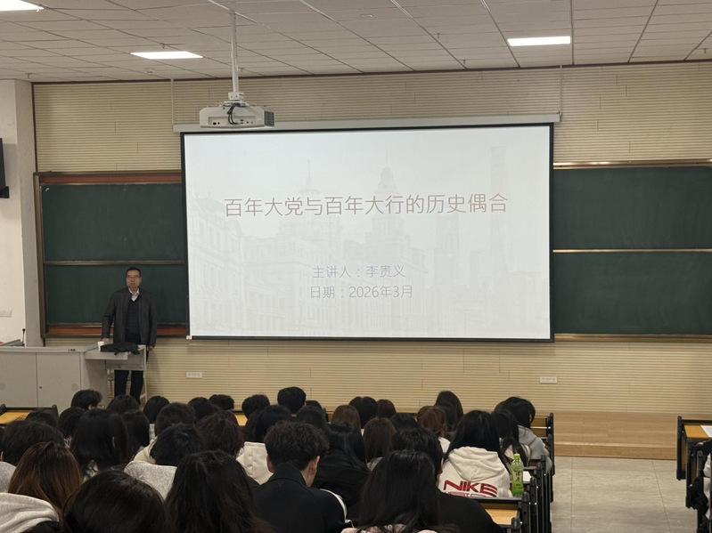 讲座中,李贵义教授还分享了他的个人专著《金融与抗战:中国银行的抗战记忆》的创作历程与学术价值,该书已被清华大学、北京大学等20多家高校、图书馆及金融博物馆收藏,充分展现了老一辈金融人的家国情怀与使命担当。整场讲座内容厚重、立意深远,将专业认知与思政教育有机融合,引导同学们把个人职业发展融入国家发展大局。