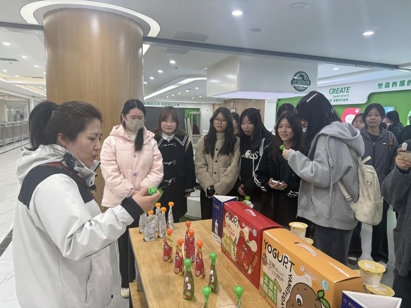 上午,兰州庄园牧场股份有限公司负责人热情接待了师生一行,带领同学们走进企业生产厂房,开启了沉浸式认知实习之旅。负责人围绕企业发展脉络,详细介绍了庄园牧场的发展历史、核心企业文化以及“奉献精良品质,造就时代品牌”的企业使命,让学生们对这家集奶牛养殖、技术研发、乳品加工、销售为一体的A股上市企业有了全面认知。随后,结合厂房内的智能化生产设备,负责人重点讲解了先进生产技术、乳品包装原理,同时系统介绍了企业的产业链模式、牧场分布格局,以及公司在甘肃、陕西、青海三大生产基地的布局优势,让学生们直观感受现代化乳制品企业的运营模式与发展实力。据悉,该企业榆中生产基地已获评兰州市工业企业“智能工厂”,其自动化、智能化水平处于行业领先地位,让在场学生深受启发。