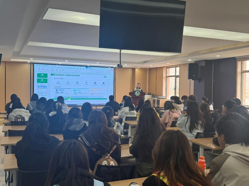 参观完生产厂房后,师生一行前往企业会议室,开展专业专题交流。企业财务负责人聚焦管理会计核心应用,结合庄园牧场的实际运营案例,详细讲解了企业财务系统的运作流程、管理会计成本核算的具体方法,重点阐释了预算管理在企业盈利提升中的核心作用,包括如何通过科学预算优化资源配置、如何实现财务与业务的深度联动,以及预算执行、监控与动态调整的全流程要点,让学生们清晰地了解管理会计在企业经营决策中的实践价值,有效破解了课堂理论学习与企业实际应用脱节的难题,呼应了国家全面深化管理会计应用、推动财会人才实践能力提升的要求。