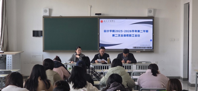 为全面落实学校新学期教学工作会议精神,严抓教学全流程规范管理,扎实推进本科教学合格评估迎评促建工作,统筹做好毕业班毕业实习与毕业论文全周期质量管控,3月26日,会计学院在综合楼C101召开新学期教学工作全体教职工大会。会议由行政院长何成洋主持,教学院长董成、教学院长李菊香、教学副院长李菲、办公室主任王礼军、教学院长助理武璇出席会议,全体专任教师参会。