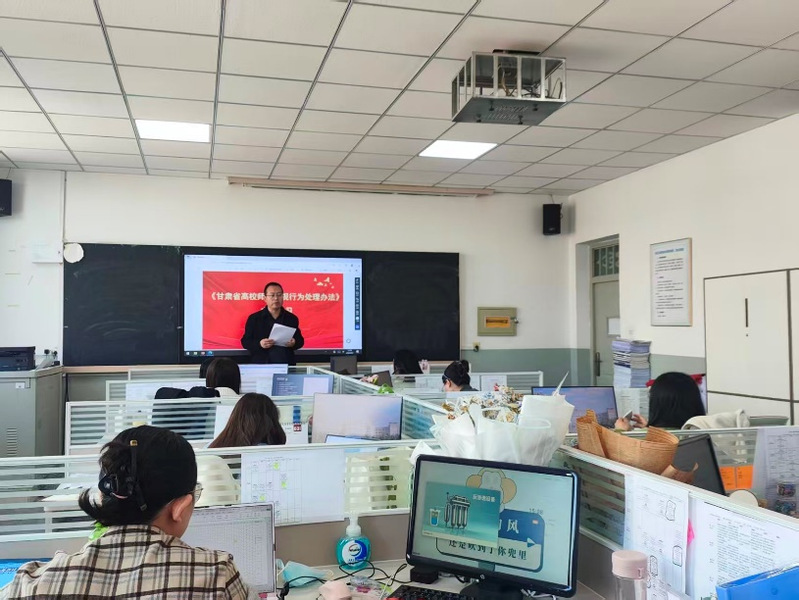 会上,李小龙老师首先传达了学校《关于组织学习〈甘肃省高校师德违规行为处理办法〉的通知》精神,强调了师德师风建设的重要性。他指出,师德是教师的立身之本,全体教师要以《办法》为镜鉴,时刻绷紧纪律之弦,做到心有所畏、言有所戒、行有所止。